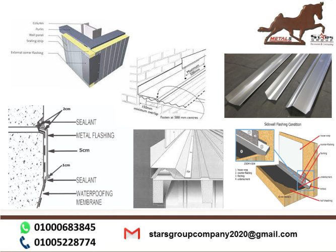 فلاشنج العزل : يصنع من صاج الجلفانيز طبقآ للمواصفات العالمية ويشكل علي شكل شرائح يتم تشكيلها حسب الديتلز المطلوبة.