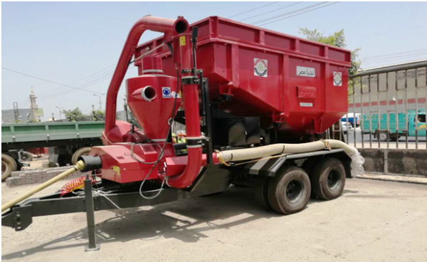 مقطورة تعبئة ونقل ووزن وتفريغ الحبوب وتعمل المقطورة عن طريق استخدام نظام يقوم بتوليد الحركة وإنجاز الأعمال الميكانيكية باستخدام الهواء المضغوط، وهو ما يُعرف بنظام البنيوماتيك.